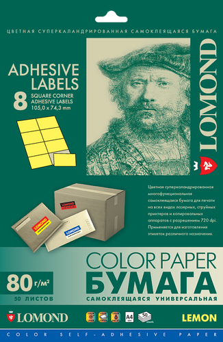 Универсальная самоклеящаяся цветная бумага Lomond предназначена для изготовления разнообразных лэйблов, этикеток и т.п., которые используются как наклейки на почтовую корреспонденцию, товарные упаковки и любые другие изделия.