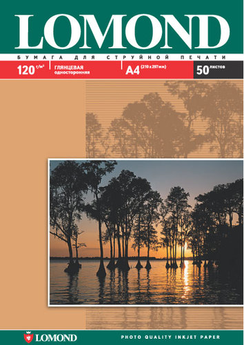 Название  Односторонняя Глянцевая фотобумага для струйной печати, A4, 120 г/м2, 50 листов.