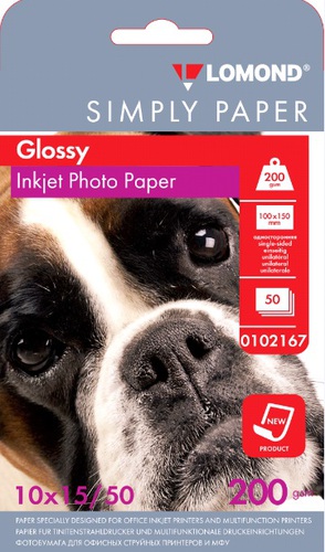 200 г/м2, 10*15 см, Односторонняя эконом. глянцевая фотобумага для струйной печати, 50 листов. (Simply Papers)