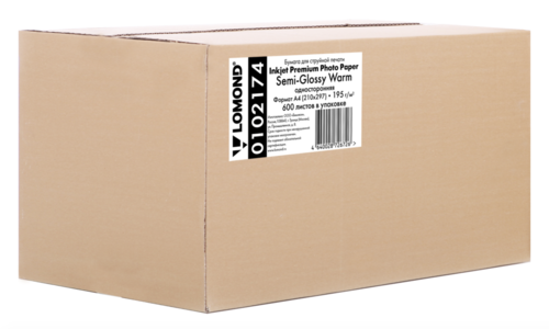 Лицевая сторона: Полуглянцевая (Semi Glossy), Тепло-белый цвет. Обратная сторона: Не используется. Формат A4 (210 x 297 мм.), Плотость 195 г/м2. 600 листов (тех. упаковка). Для струйной печати. Водорастворимые и Пигментные чернила. Максимальное разрешение печати 5760 dpi.