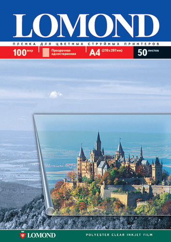 LOMOND PET Ink Jet Film – прозрачная, с бумажной подложкой, А4, 100 мкм, 10 листов