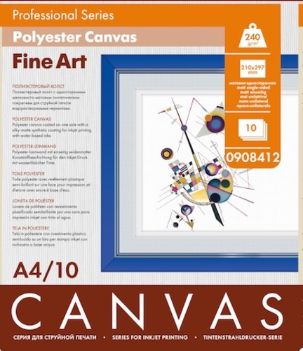 | Артикул | 0908412 |  | | Название | Холст Lomond полиэстеровый белый матовый водостойкий 240 г/м² |  | | Формат | A4 (210x297 мм) |  | | Плотность | 240 г/м² |  | | Количество листов | 10 |  | | Покрытие | Матовое |  | | Материал | Полиэстеровое волокно 600D |  | | Цвет | Белый |  | | Совместимые чернила | Водорастворимые, эко-сольвентные, латексные |  | | Водостойкость | Да |  | | Особенности | Пластичный для натяжки на раму, возможность обработки лаком |  | | Код по складу | П018144 |  |