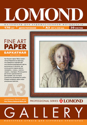 Для печати репродукций картин, выполненных в техниках: «акварель», «гуашь», «масло», «акрил» и «темпера». Рекомендуется для печати любых фотографий, арт-постеров, портфолио. Придает фотографиям особую бархатистость. Единственная двусторонняя бумага в серии Velour. УСЛОВИЯ ИСПОЛЬЗОВАНИЯ И ХРАНЕНИЯ: Материал рекомендуется использовать и хранить при относительной влажности от 35 до 65% и температуре от 10 до 30 градусов Цельсия. Поверхность чувствительна к механическим повреждениям, поэтому рекомендуется хранить материал в оригинальных упаковках, конвертах или папках. При печати осторожно обращаться с материалом, не касаться запечатываемой поверхности. Для получения наилучших результатов рекомендуется использовать ICC-профили Lomond. По желанию пользователя отпечатанное изображение можно ламинировать. Ламинирование возможно любым способом. Рекомендуется производить не ранее, чем через 24 часа. Не предназначена для рисования красками.