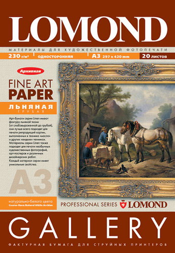 Грубая льняная односторонняя фактура натурально-белого цвета, архивная. Для всех видов настольных струйных принтеров. Рекомендуется для печати пигментными чернилами. Подходит для печати чернилами на основе водорастворимых красителей.