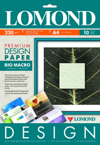 Фактура: Крупная рельефная фактура биологического субстрата, Матовая. Обратная сторона: Не используется. Формат A4 (210 x 297 см.), Плотость 230 г/м2. 10 листов. Для струйной печати. Пигментные и Водорастворимые чернила. Максимальное разрешение печати 2880 dpi.