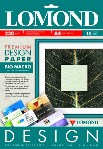 Фактура: Крупная рельефная фактура биологического субстрата, Глянцевая. Обратная сторона: Не используется. Формат A4 (210 x 297 см.), Плотость 230 г/м2. 10 листов. Для струйной печати. Пигментные и Водорастворимые чернила. Максимальное разрешение печати 2880 dpi.