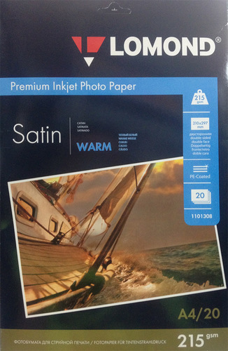Лицевая сторона: Атласная (Satin). Обратная сторона: Атласная (Satin). Формат A4 (210 x 297 мм.), Плотость 215 г/м2. 20 листов. Для струйной печати. Водорастворимые и Пигментные чернила. Максимальное разрешение печати 5760 dpi.