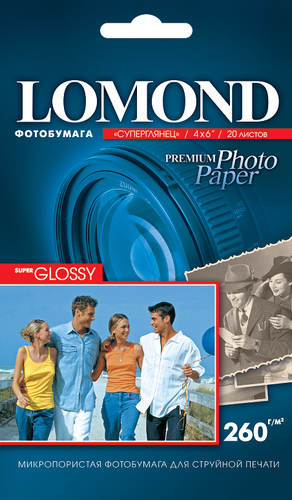Суперглянцевая ярко-белая (Super Glossy Bright) микропористая фотобумага для струйной печати, 4" x 6", 260 г/м2, 20 листов.
