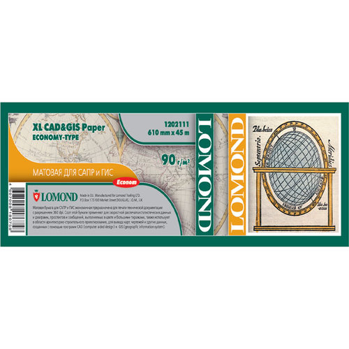 LOMOND XL CAD&GIS Paper Economy Type – матовая бумага для САПР и ГИС (экономичный тип), ролик 1067мм*45м, 90 г/м2
