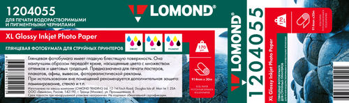 [170 г/м2] LOMOND Ролик Глянцевая односторонняя бумага, 170 г/м2, (914 мм x 30м x 50,8 мм)