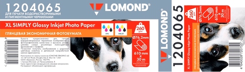 Обратите внимание! Втулка Ø = 76,2 мм Экономичная широкоформатная глянцевая фотобумага предназначена для печати водорастворимыми чернилами изображений с фотографическим качеством и высоким разрешением самых различных полноцветных приложений и графики. Позволяет получать изображение с широким цветовым охватом и детальной проработкой мелких фрагментов.