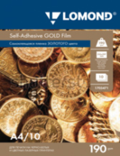 Lomond Self-Adhesive Golg Film - самоклеящаяся плёнка для цветных лазерных принтеров, золотая, A4