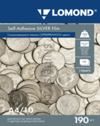 Lomond Self-Adhesive Silver Film - самоклеящаяся плёнка для цветных лазерных принтеров, серебряная, A4, 10 л.