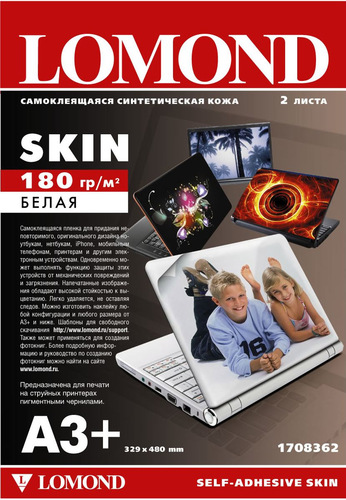 LOMOND Skin – самоклеящаяся синтетическая кожа для дизайна и защиты ноутбуков, нетбуков, телефонов, любых электронных устройств, А3+, 2 листа. Для печати пигментными чернилами.