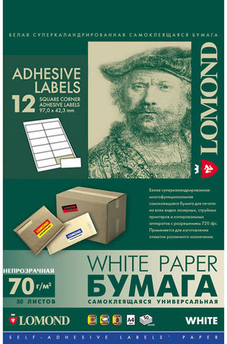 Универсальная непрозрачная самоклеящаяся бумага Lomond предназначена для изготовления разнообразных лэйблов, этикеток и т.п., которые используются как наклейки на почтовую корреспонденцию, товарные упаковки и любые другие изделия.