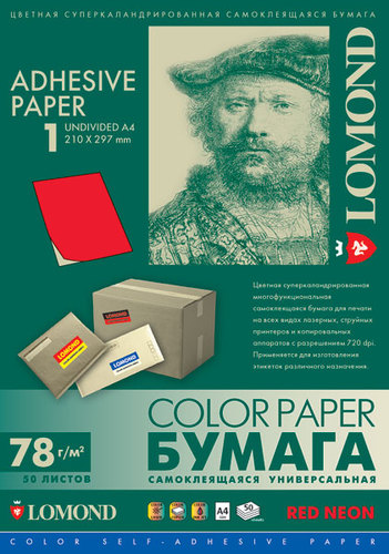 Универсальная самоклеящаяся цветная неоновая бумага Lomond предназначена для изготовления разнообразных лэйблов, этикеток и т.п., которые используются как наклейки на почтовую корреспонденцию, товарные упаковки и любые другие изделия.