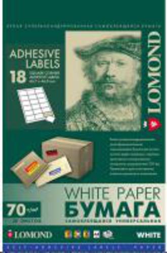 LOMOND Самоклеящаяся универсальная бумага для этикеток, A4, 18 шт. (66.7 x 46 мм), 70 г/м2, 1650 листов, технологическая упаковка