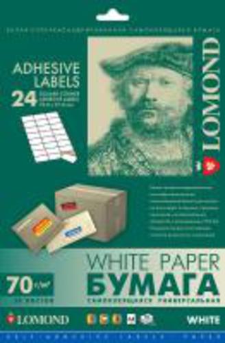 LOMOND Самоклеящаяся универсальная бумага для этикеток, A4, 24 шт. (64 x 33,4 мм), 70 г/м2, 1650 листов, технологическая упаковка