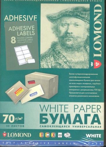 Универсальная самоклеящаяся бумага Lomond предназначена для изготовления разнообразных этикеток, которые используются как наклейки на почтовую корреспонденцию, товарные упаковки и любые другие изделия.