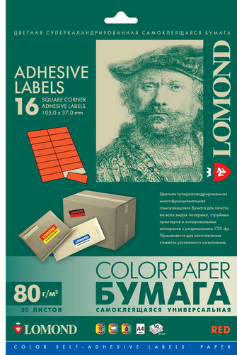 Универсальная самоклеящаяся цветная бумага Lomond предназначена для изготовления разнообразных лэйблов, этикеток и т.п., которые используются как наклейки на почтовую корреспонденцию, товарные упаковки и любые другие изделия.