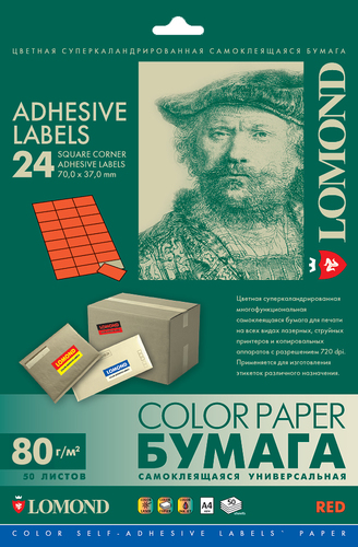 Универсальная самоклеящаяся цветная бумага Lomond предназначена для изготовления разнообразных лэйблов, этикеток и т.п., которые используются как наклейки на почтовую корреспонденцию, товарные упаковки и любые другие изделия.