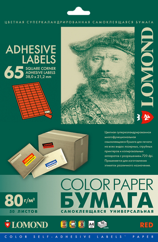 Универсальная самоклеящаяся цветная бумага Lomond предназначена для изготовления разнообразных лэйблов, этикеток и т.п., которые используются как наклейки на почтовую корреспонденцию, товарные упаковки и любые другие изделия.