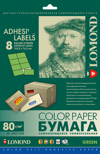 Универсальная самоклеящаяся цветная бумага Lomond предназначена для изготовления разнообразных лэйблов, этикеток и т.п., которые используются как наклейки на почтовую корреспонденцию, товарные упаковки и любые другие изделия.