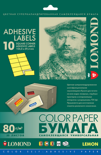 Универсальная самоклеящаяся цветная бумага Lomond предназначена для изготовления разнообразных лэйблов, этикеток и т.п., которые используются как наклейки на почтовую корреспонденцию, товарные упаковки и любые другие изделия.