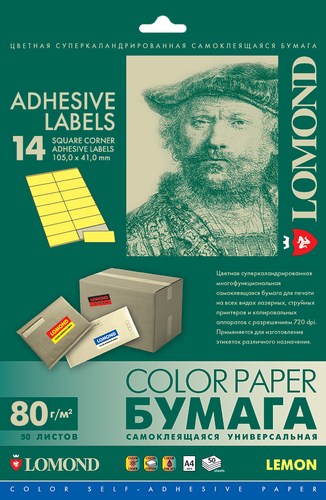 Универсальная самоклеящаяся цветная бумага Lomond предназначена для изготовления разнообразных лэйблов, этикеток и т.п., которые используются как наклейки на почтовую корреспонденцию, товарные упаковки и любые другие изделия.