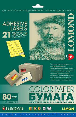 Универсальная самоклеящаяся цветная бумага Lomond предназначена для изготовления разнообразных лэйблов, этикеток и т.п., которые используются как наклейки на почтовую корреспонденцию, товарные упаковки и любые другие изделия.