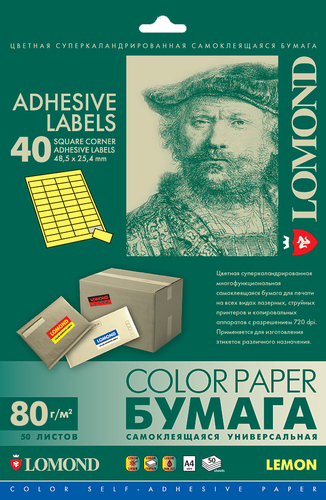 Универсальная самоклеящаяся цветная бумага Lomond предназначена для изготовления разнообразных лэйблов, этикеток и т.п., которые используются как наклейки на почтовую корреспонденцию, товарные упаковки и любые другие изделия.