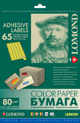 Универсальная самоклеящаяся цветная бумага Lomond предназначена для изготовления разнообразных лэйблов, этикеток и т.п., которые используются как наклейки на почтовую корреспонденцию, товарные упаковки и любые другие изделия.