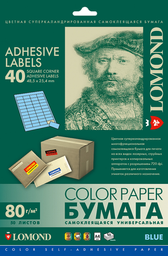 Универсальная самоклеящаяся цветная бумага Lomond предназначена для изготовления разнообразных лэйблов, этикеток и т.п., которые используются как наклейки на почтовую корреспонденцию, товарные упаковки и любые другие изделия.