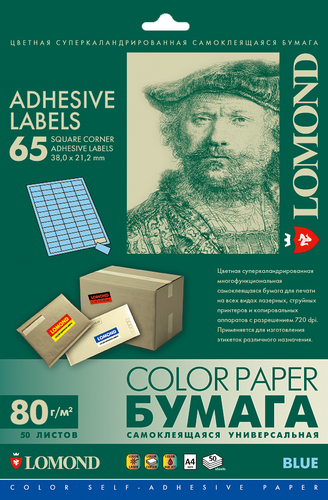 Универсальная самоклеящаяся цветная бумага Lomond предназначена для изготовления разнообразных лэйблов, этикеток и т.п., которые используются как наклейки на почтовую корреспонденцию, товарные упаковки и любые другие изделия.