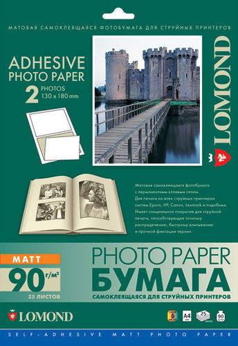 Cамоклеящаяся фотобумага Lomond имеет нерасплывающуюся, термоустойчивую клеевую основу, ровную поверхность, обеспечивает хорошее сцепление с неровными, неполяризованными поверхностями даже при низких температурах.