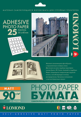 Cамоклеящаяся фотобумага Lomond предназначена для изготовления разнообразных лэйблов, этикеток с фотокачеством. Так же самоклеящуюся фотобумагу можно использовать для изготовления фотографий и декорирования интерьера.