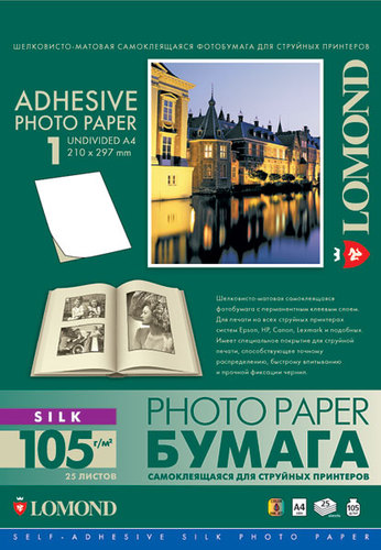 Cамоклеящаяся фотобумага Lomond предназначена для изготовления разнообразных лэйблов, этикеток с фотокачеством. Так же самоклеящуюся фотобумагу можно использовать для изготовления фотографий и декорирования интерьера.