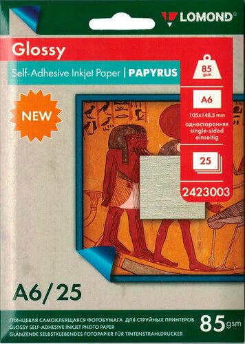 Самоклеящаяся фотобумага А6 (105 х 148,5мм.), Глянцевая, с тиснением "Папирус", 85 г/м2, 25 листов