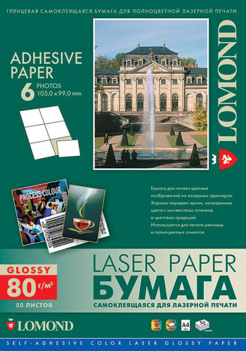 Глянцевая самоклеящаяся бумага Lomond предназначена для изготовления разнообразных лэйблов, этикеток и т.п., которые используются как наклейки на почтовую корреспонденцию, товарные упаковки и любые другие изделия. Бумага разработана для полноцветной печати на различных типах лазерных принтеров. Хорошо притягивает тонер, отличается идеальной проходимостью во всех типах принтеров. Глянцевая самоклеящаяся бумага Lomond имеет не расплывающуюся, термоустойчивую клеевую основу, ровную поверхность, обеспечивает хорошее сцепление с неровными, неполяризованными поверхностями даже при низких температурах.